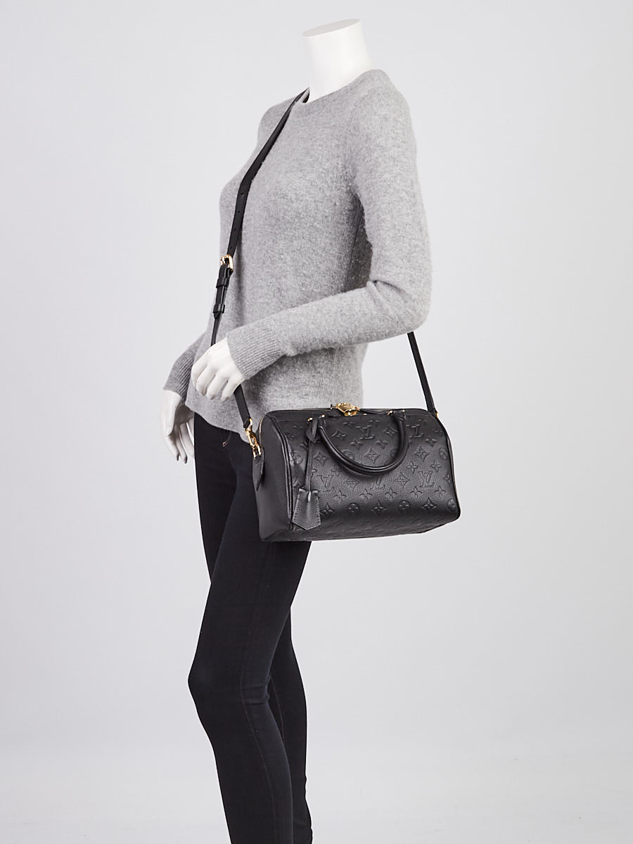 The Speedy 25 is the initial icon to be introduced to this Empreinte leather collection, the embossed Monogram contour is a symbol of an abstract heritage and craft of Louis Vuitton. The remarkable design features of the iconic shape are preserved, however new features typical of Monogram Empreinte were added, including outsize zipper pulls and shiny brass rivets.