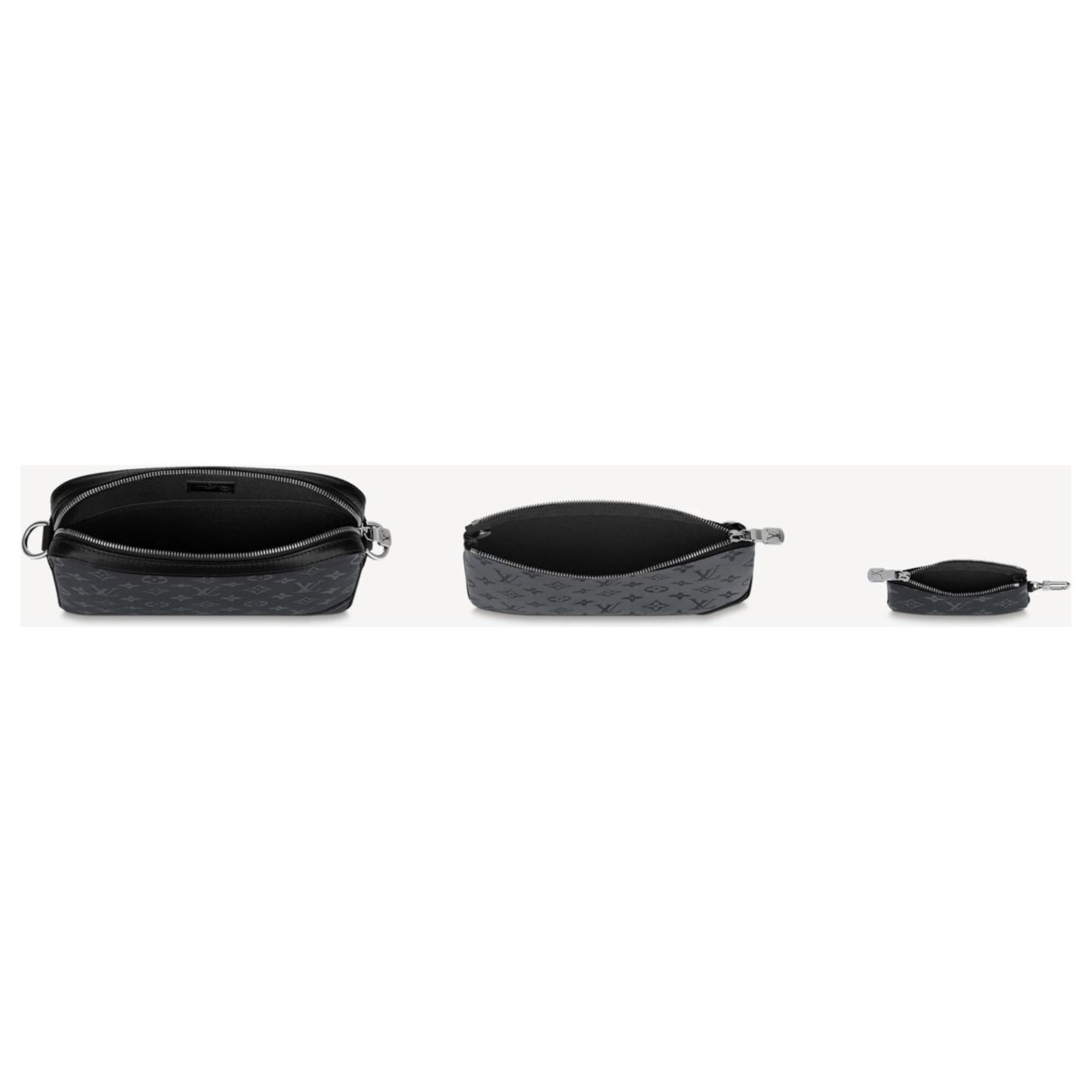 The essence of contemporary luxury and utility is the Trio Messenger Damier Graphite Canvas Handbag in Black. This sleek bag comes with a measurement of 25 x 18.5 x 7 cm which proves its style and versatility.It is fitted with an ecliptic canvas that makes it chic and urban. The Trio Messenger is more than just an ordinary crossover bag because it has an element of functionality. Providing added options for convenience, it has a removable coin purse on the shoulder strap as well as a separate pocket with a zipper that can be removed.